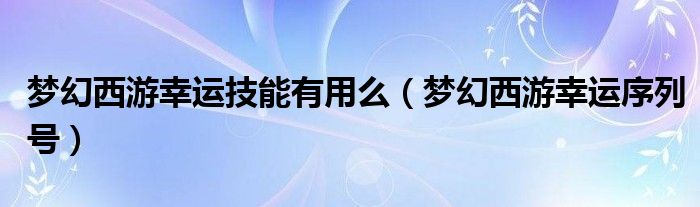 梦幻西游幸运技能有用么,梦幻西游幸运序列号这个很多人还不知道,小飞来为大家解答以上的问题。现在让我们一起来看看吧!