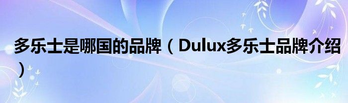 大家好,小源来为大家解答以上问题。多乐士是哪国的品牌,Dulux多乐士品牌介绍很多人还不知道,现在让我们一起来看看吧!