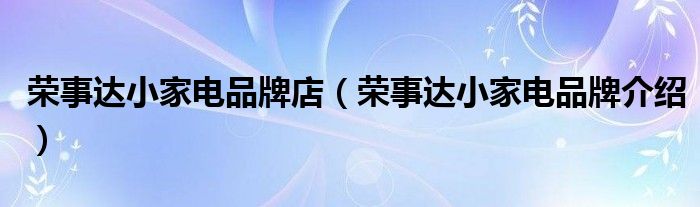 大家好,小源来为大家解答以上问题。荣事达小家电品牌店,荣事达小家电品牌介绍很多人还不知道,现在让我们一起来看看吧!