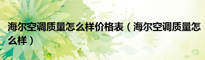 一.海尔空调质量怎么样