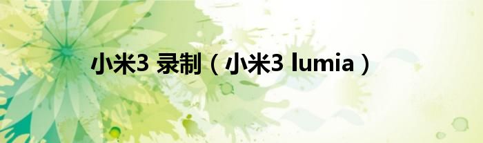 大家好,雨雨来为大家解答以上问题,小米3 录制,小米3 lumia很多人还不知道,现在让我们一起来看看吧!