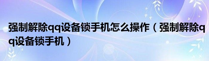大家好,小晋来为大家解答以下问题,关于强制解除qq设备锁手机怎么操作,强制解除qq设备锁手机很多人还不知道,今天让我们一起来看看吧!