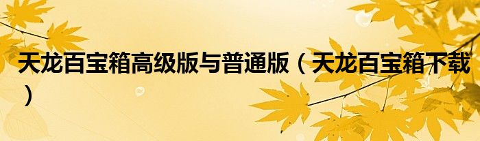 天龙百宝箱高级版与普通版,天龙百宝箱下载很多人还不知道,乐乐来为大家解答以上问题,现在让我们一起来看看吧!