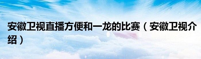 大家好,小源来为大家解答以上问题。安徽卫视直播方便和一龙的比赛,安徽卫视介绍很多人还不知道,现在让我们一起来看看吧!