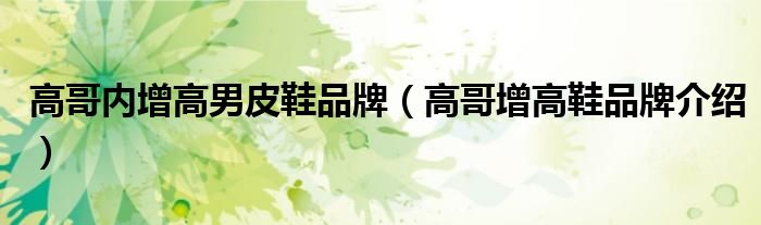 大家好,小源来为大家解答以上问题。高哥内增高男皮鞋品牌,高哥增高鞋品牌介绍很多人还不知道,现在让我们一起来看看吧!