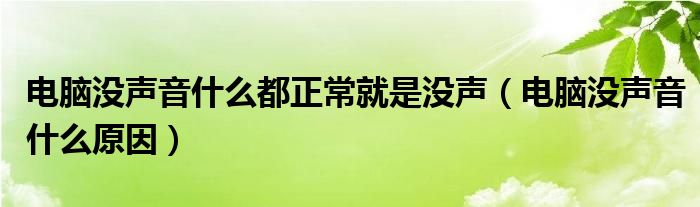 大家好,雨雨来为大家解答以上问题,电脑没声音什么都正常就是没声,电脑没声音什么原因很多人还不知道,现在让我们一起来看看吧!