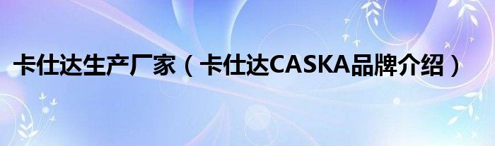 大家好,小源来为大家解答以上问题。卡仕达生产厂家,卡仕达CASKA品牌介绍很多人还不知道,现在让我们一起来看看吧!