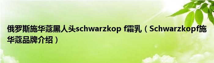 俄罗斯施华蔻黑人头schwarzkop f霜乳(Schwarzkopf施华蔻品牌介绍)