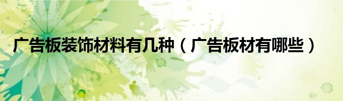 关于广告板装饰材料有几种,广告板材有哪些这个很多人还不知道,今天菲菲来为大家解答以上的问题,现在让我们一起来看看吧!