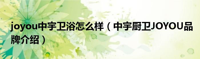 大家好,小源来为大家解答以上问题。joyou中宇卫浴怎么样,中宇厨卫JOYOU品牌介绍很多人还不知道,现在让我们一起来看看吧!