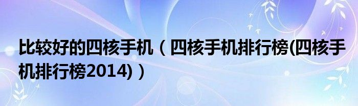 大家好,小常来为大家解答以上问题。比较好的四核手机,四核手机排行榜(四核手机排行榜2014)很多人还不知道,现在让我们一起来看看吧!