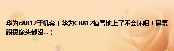 大家好,小常来为大家解答以上问题。华为c8812手机套,华为C8812掉雪地上了不会坏吧!屏幕跟摄像头都没...很多人还不知道,现在让我们一起来看看吧!