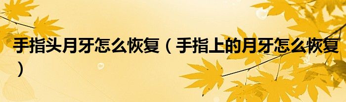 大家好,linda来为大家解答以上的问题。手指头月牙怎么恢复,手指上的月牙怎么恢复很多人还不知道,现在让我们一起来看看吧!
