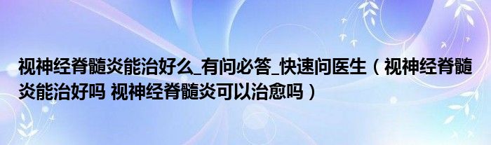 视神经脊髓炎能治好么_有问必答_快速问医生(视神经脊髓炎能治好吗视神经脊髓炎可以...