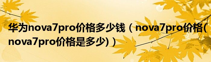 大家好,小常来为大家解答以上问题。华为nova7pro价格多少钱,nova7pro价格(nova7pro价格是多少)很多人还不知道,现在让我们一起来看看吧!