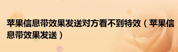 大家好,小晋来为大家解答以下问题,关于苹果信息带效果发送对方看不到特效,苹果信息带效果发送很多人还不知道,今天让我们一起来看看吧!