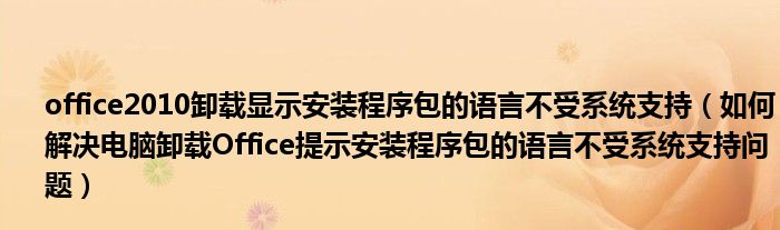 大家好,小太来为大家解答以上问题。office2010卸载显示安装程序包的语言不受系统支持,如何解决电脑卸载Office提示安装程序包的语言不受系统支持问题很多人还不知道,现在让我们一起来看看吧!