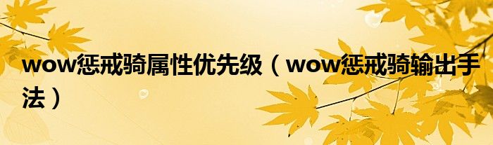 大家好,雨雨来为大家解答以上问题,wow惩戒骑属性优先级,wow惩戒骑输出手法很多人还不知道,现在让我们一起来看看吧!