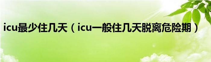 1、如果住在ICU,可能几天都走不出危险。可能是1-2周,甚至更长,视患者具体情况而定。