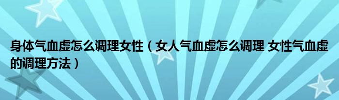 大家好,linda来为大家解答以上的问题。身体气血虚怎么调理女性,女人气血虚怎么调理 女性气血虚的调理方法很多人还不知道,现在让我们一起来看看吧!