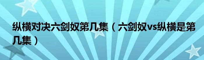 大家好,小晋来为大家解答以下问题,关于纵横对决六剑奴第几集,六剑奴vs纵横是第几集很多人还不知道,今天让我们一起来看看吧!