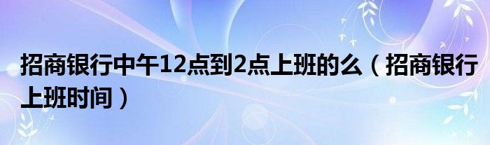 关于招商银行中午12点到2点上班的么,招商银行上班时间这个很多人还不知道,今天菲菲来为大家解答以上的问题,现在让我们一起来看看吧!
