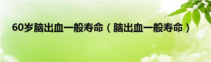 大家好,linda来为大家解答以上的问题。60岁脑出血一般寿命,脑出血一般寿命很多人还不知道,现在让我们一起来看看吧!
