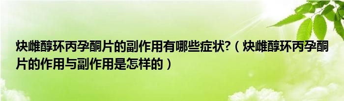 大家好,linda来为大家解答以上的问题。炔雌醇环丙孕酮片的副作用有哪些症状?,炔雌醇环丙孕酮片的作用与副作用是怎样的很多人还不知道,现在让我们一起来看看吧!