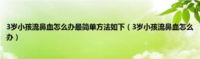 大家好,linda来为大家解答以上的问题。3岁小孩流鼻血怎么办最简单方法如下,3岁小孩流鼻血怎么办很多人还不知道,现在让我们一起来看看吧!
