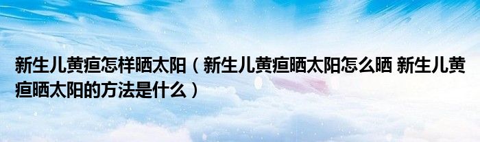 大家好,linda来为大家解答以上的问题。新生儿黄疸怎样晒太阳,新生儿黄疸晒太阳怎么晒 新生儿黄疸晒太阳的方法是什么很多人还不知道,现在让我们一起来看看吧!