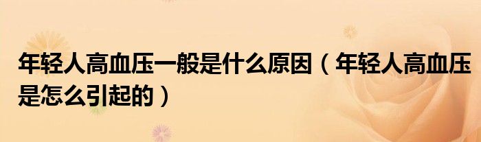 1、年轻人高血压是怎么引起的?高血压的原因有很多,比如极度肥胖,容易高血压;比如特别焦虑,长期睡眠不好,容易导致高血压;比如夜间呼吸暂停和打鼾也会引起高血压;比如有高血压家族倾向的,就是家里父母都有高血压,患者比其他人更容易得高血压;比如长期的饮食习惯偏咸,工作紧张,特别辛苦,容易引起高血压。