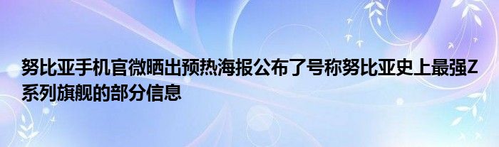 1月20日消息,今日,努比亚手机官微晒出预热海报,公布了号称努比亚史上最强Z系列旗舰的部分信息。