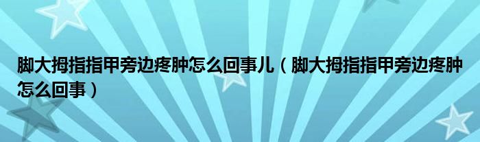 大家好,linda来为大家解答以上的问题。脚大拇指指甲旁边疼肿怎么回事儿,脚大拇指指甲旁边疼肿怎么回事很多人还不知道,现在让我们一起来看看吧!