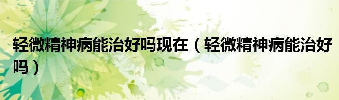 大家好,linda来为大家解答以上的问题。轻微精神病能治好吗现在,轻微精神病能治好吗很多人还不知道,现在让我们一起来看看吧!