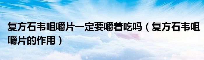 大家好,linda来为大家解答以上的问题。复方石韦咀嚼片一定要嚼着吃吗,复方石韦咀嚼片的作用很多人还不知道,现在让我们一起来看看吧!