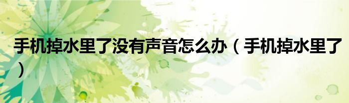 大家好,小晋来为大家解答以下问题,关于手机掉水里了没有声音怎么办,手机掉水里了很多人还不知道,今天让我们一起来看看吧!