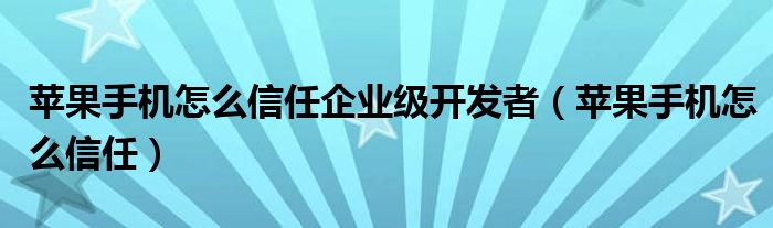 苹果手机怎么信任企业级开发者(苹果手机怎么信任)