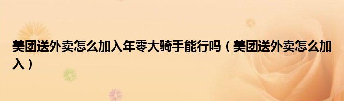 大家好,小晋来为大家解答以下问题,关于美团送外卖怎么加入年零大骑手能行吗,美团送外卖怎么加入很多人还不知道,今天让我们一起来看看吧!