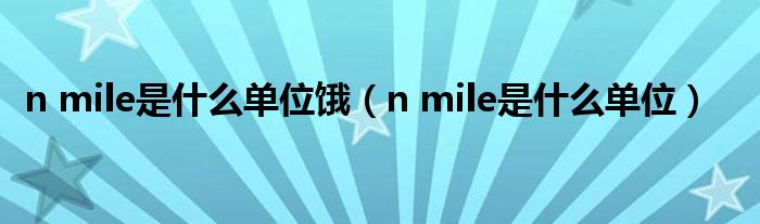 大家好,小晋来为大家解答以下问题,关于n mile是什么单位饿,n mile是什么单位很多人还不知道,今天让我们一起来看看吧!