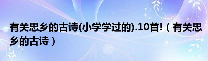 大家好,小晋来为大家解答以下问题,关于有关思乡的古诗(小学学过的).10首!,有关思乡的古诗很多人还不知道,今天让我们一起来看看吧!