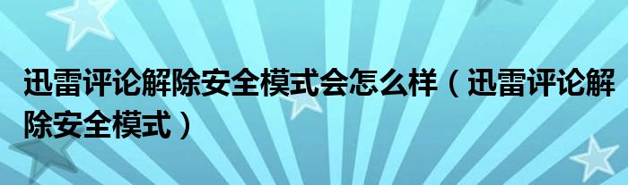 大家好,小晋来为大家解答以下问题,关于迅雷评论解除安全模式会怎么样,迅雷评论解除安全模式很多人还不知道,今天让我们一起来看看吧!