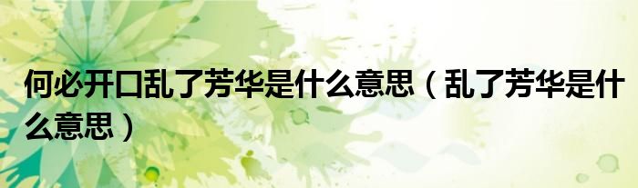 大家好,小晋来为大家解答以下问题,关于何必开口乱了芳华是什么意思,乱了芳华是什么意思很多人还不知道,今天让我们一起来看看吧!