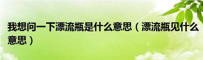 大家好,小晋来为大家解答以下问题,关于我想问一下漂流瓶是什么意思,漂流瓶见什么意思很多人还不知道,今天让我们一起来看看吧!