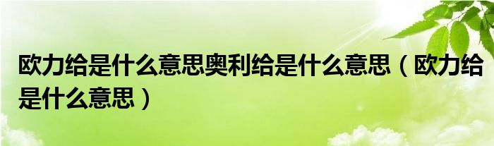 大家好,小晋来为大家解答以下问题,关于欧力给是什么意思奥利给是什么意思,欧力给是什么意思很多人还不知道,今天让我们一起来看看吧!