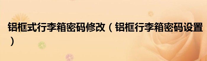 大家好,小晋来为大家解答以下问题,关于铝框式行李箱密码修改,铝框行李箱密码设置很多人还不知道,今天让我们一起来看看吧!