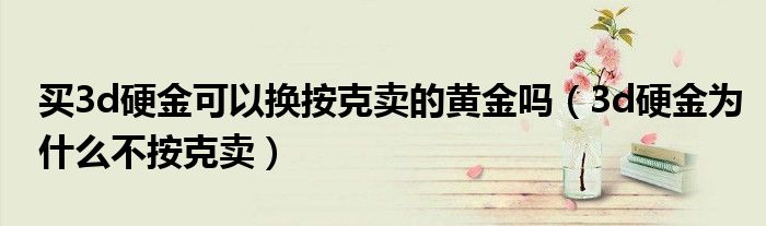 大家好,小晋来为大家解答以下问题,关于买3d硬金可以换按克卖的黄金吗,3d硬金为什么不按克卖很多人还不知道,今天让我们一起来看看吧!
