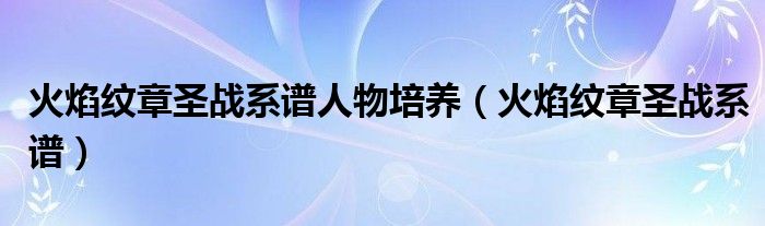 大家好,小晋来为大家解答以下问题,关于火焰纹章圣战系谱人物培养,火焰纹章圣战系谱很多人还不知道,今天让我们一起来看看吧!