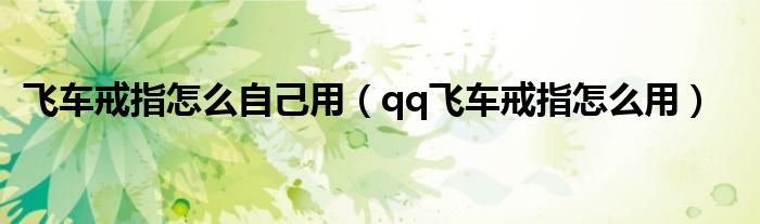 飞车戒指怎么自己用(qq飞车戒指怎么用)