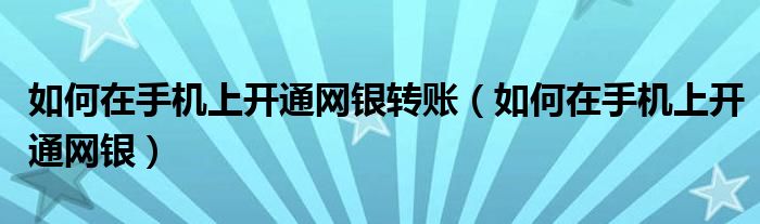 大家好,小晋来为大家解答以下问题,关于如何在手机上开通网银转账,如何在手机上开通网银很多人还不知道,今天让我们一起来看看吧!