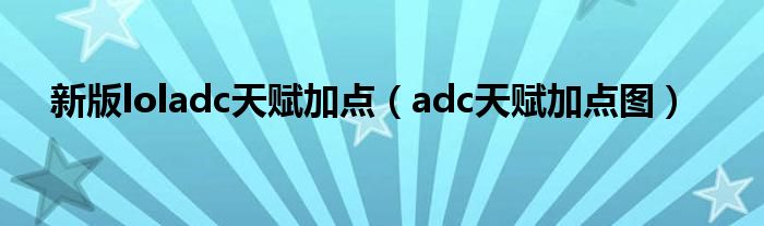 新版loladc天赋加点(adc天赋加点图)